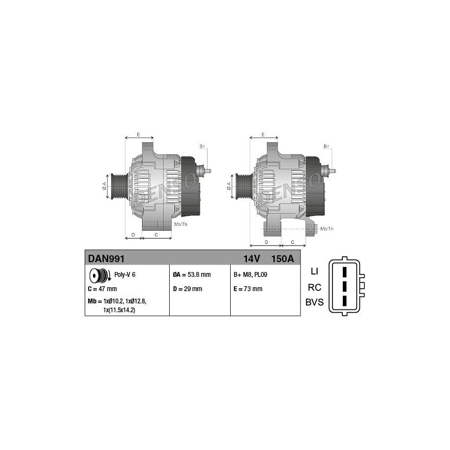 Produit : Alternateur DENSO DAN991 pour LAND ROVER DISCOVERY, RANGE ROVER