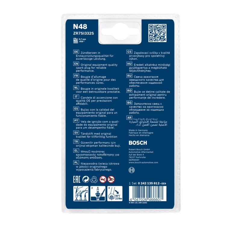 L’utilisation de pièces adaptées est essentielle pour préserver la longévité et le bon fonctionnement de votre véhicule. Ce Bougie d'allumage BOSCH est conçu pour assurer un ajustement précis et des performances fiables dans des conditions normales d’utilisation, sans modification du système d’origine.