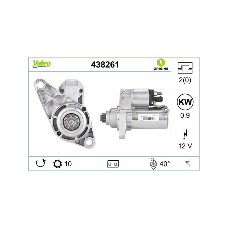 Démarreur VALEO 438261 pour AUDI, SEAT, SKODA, VW OE 02T911023D