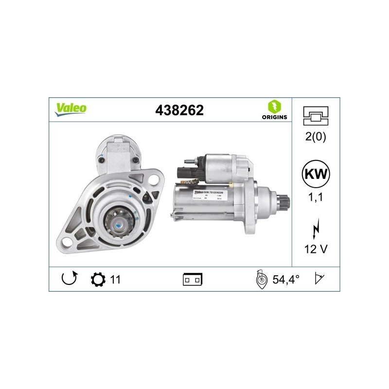 Produit : Démarreur VALEO 438262 pour AUDI, SEAT, SKODA, VW OE 0AM911023K