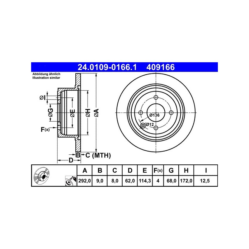 Produit : Disque de frein ATE 24.0109-0166.1 pour NISSAN CUBE, TIIDA OE D3206-EM10A