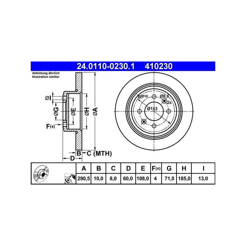 Disque de frein ATE 24.0110-0230.1 pour PEUGEOT 406 OE 4246L7