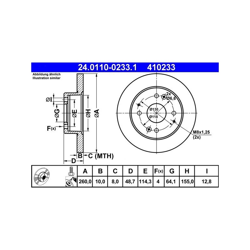 Disque de frein ATE 24.0110-0233.1 pour HONDA, ROVER ACCORD, CIVIC, 600