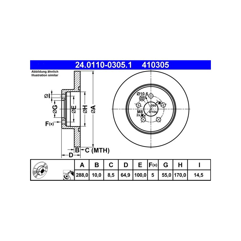 Produit : Disque de frein ATE 24.0110-0305.1 pour TOYOTA AVENSIS OE 42431-20430