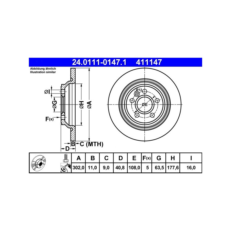 Produit : Disque de frein ATE 24.0111-0147.1 pour VOLVO OE 30769059