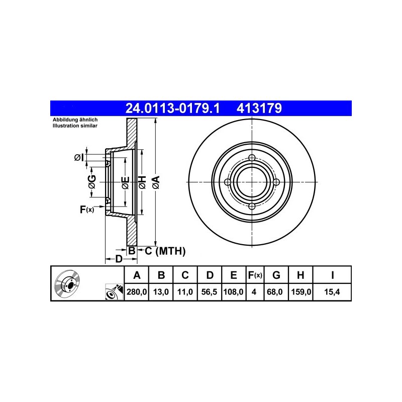 Produit : Disque de frein ATE 24.0113-0179.1 pour AUDI 80 OE 8A0615301D