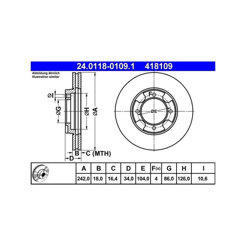 Disque de frein ATE 24.0118-0109.1 pour MITSUBISHI OE MB238615
