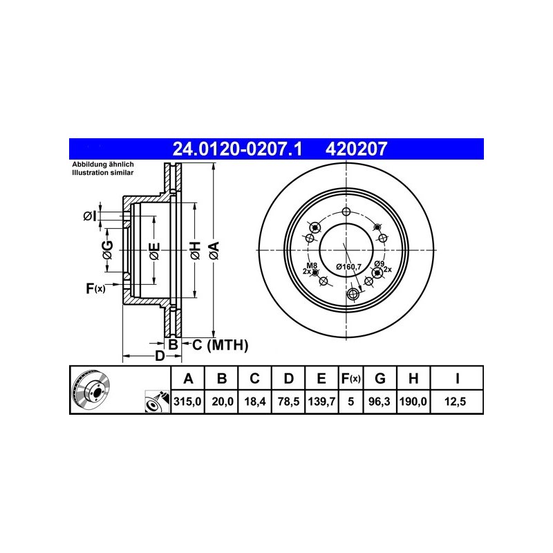 Produit : Disque de frein ATE 24.0120-0207.1 pour KIA SORENTO OE 58411-3E500
