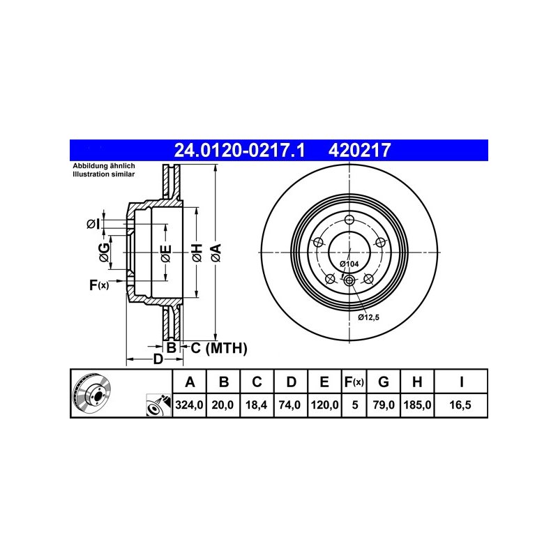 Disque de frein ATE 24.0120-0217.1 pour BMW Série 7, référence d'origine 34216765887