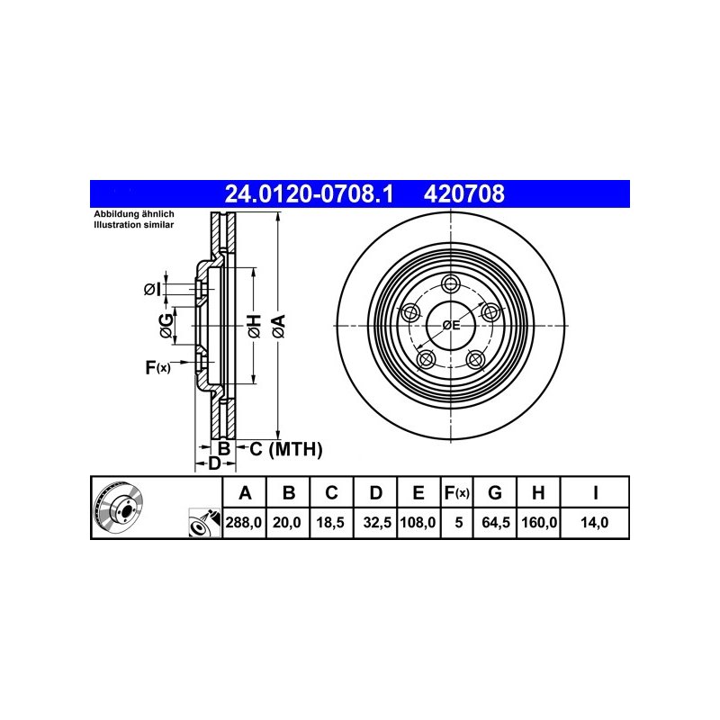 Produit : Disque de frein ATE 24.0120-0708.1 pour JAGUAR S-TYPE, XJ OE JLM20802