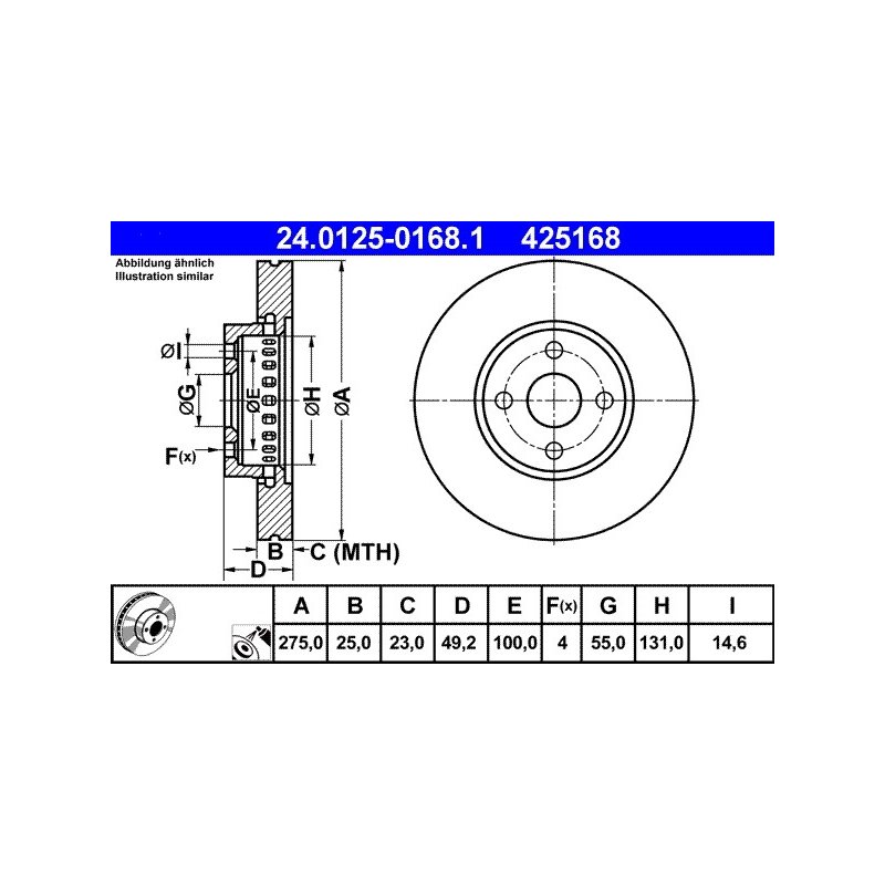 Ce Disque de frein ATE neuf pour TOYOTA est fabriqué par ATE. Il s’agit d’une pièce équivalente OEM, compatible avec la référence constructeur ainsi qu’avec d’autres références croisées le cas échéant. Conçu selon des standards de qualité élevés, ce produit est commercialisé sous la référence 24.0125-0168.1EAN: 4006633222273.