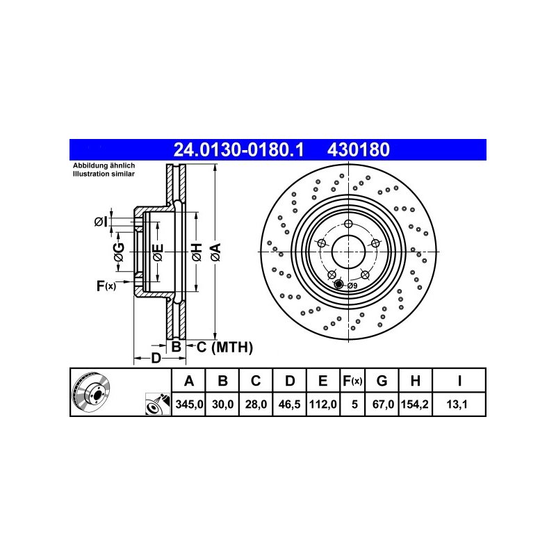 Produit : Disque de frein ATE 24.0130-0180.1 pour MERCEDES CLASSE C, CLK, SLK