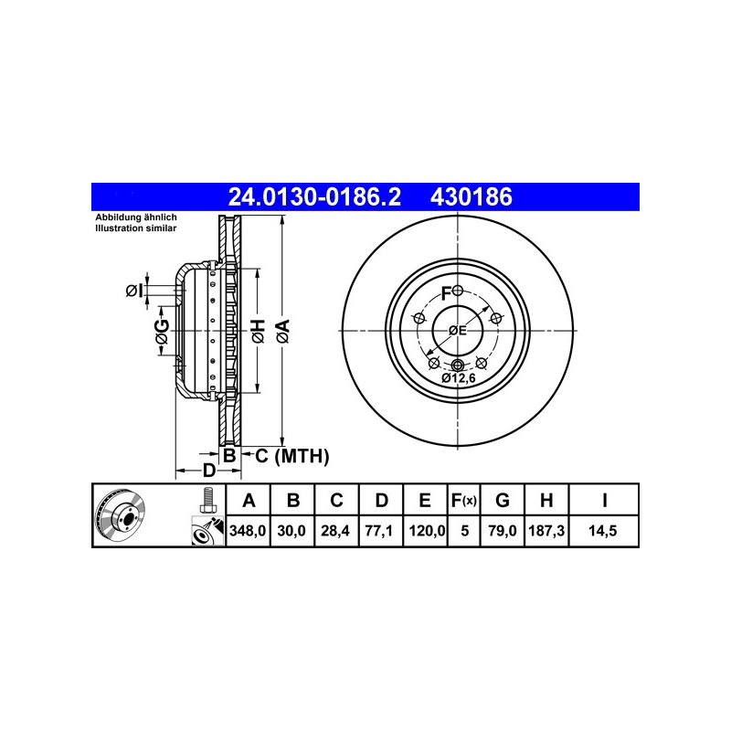 Disque de frein ATE 24.0130-0186.2 pour BMW Série 5 et 6, référence d'origine 34116763824