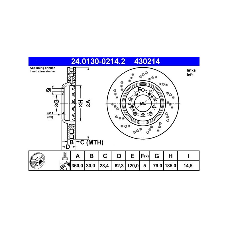 Disque de frein ATE 24.0130-0214.2 pour BMW Série 1 et Série 3, référence d'origine 34112283385