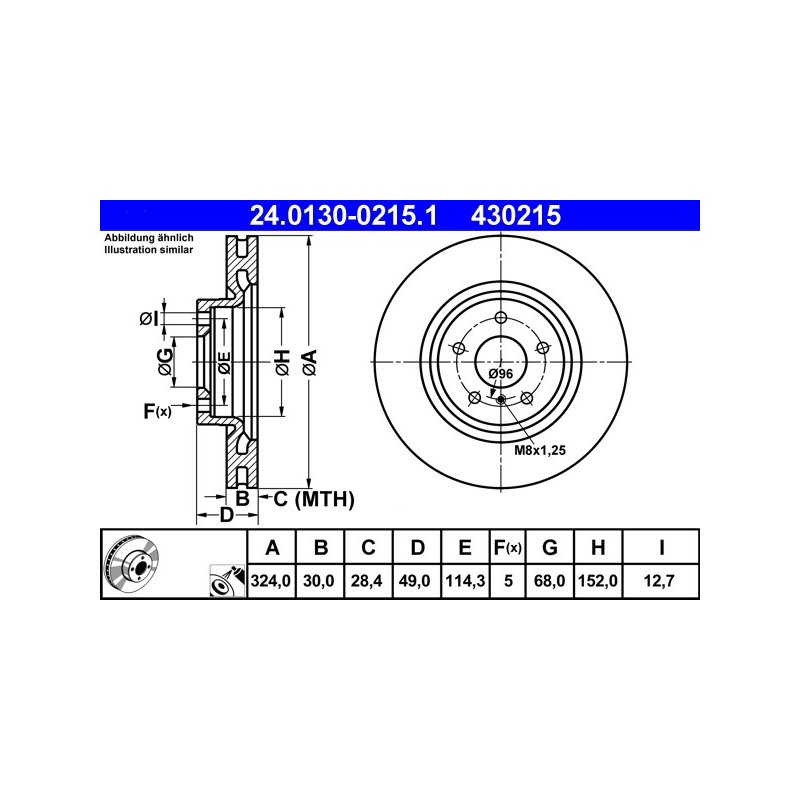 Disque de frein ATE 24.0130-0215.1 pour INFINITI, NISSAN G, 350Z