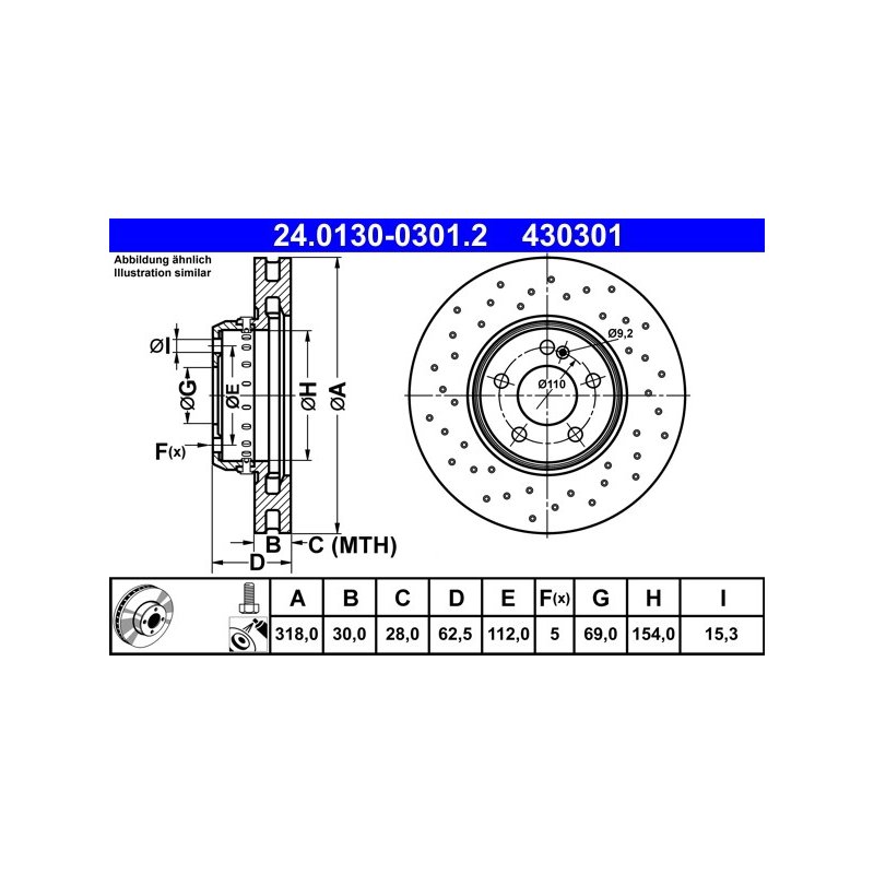 Disque de frein ATE 24.0130-0301.2 pour MERCEDES CLASSE C OE 0004212112
