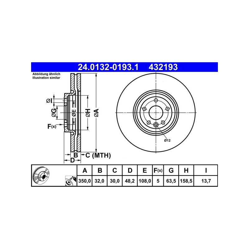 Disque de frein ATE 24.0132-0193.1 pour JAGUAR XE, XF OE T4N1803