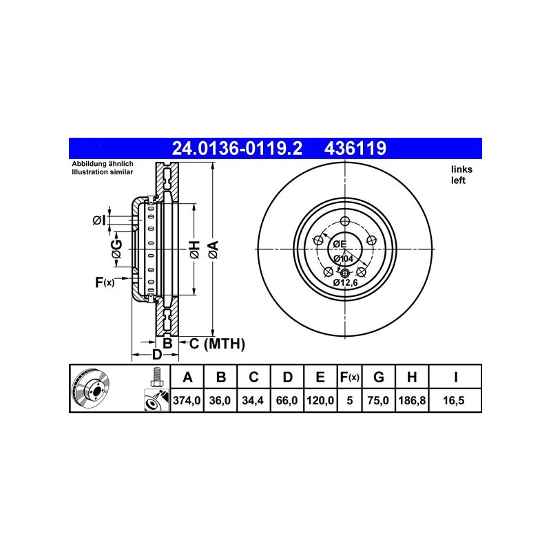 Produit : Disque de frein ATE 24.0136-0119.2 pour BMW Série 5, 6, 7, référence d'origine 34116785675