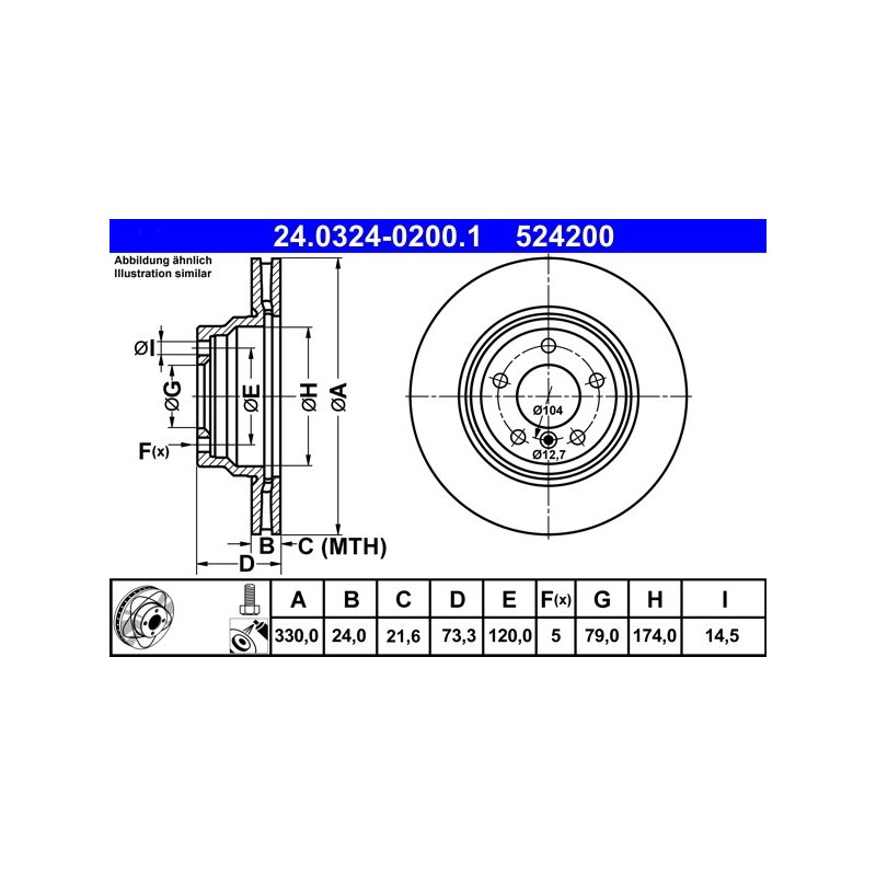 Disque de frein ATE 24.0324-0200.1 pour BMW Série 1, Série 3, X1 OE 34116764645