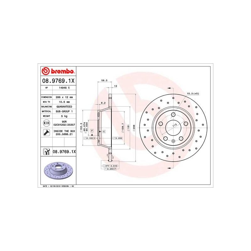 Proposé par eAuto Parts, ce Disque de frein BREMBO 08.9769.1X constitue une solution fiable et économique pour l’entretien ou la réparation de votre véhicule.