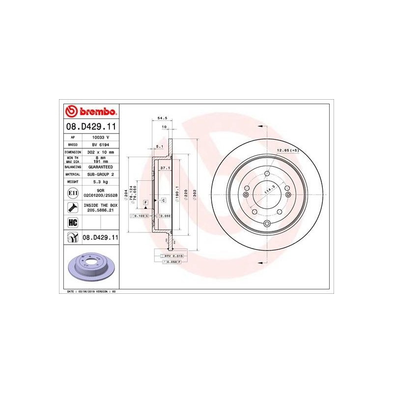 Commandez votre Disque de frein BREMBO 08.D429.11 sur eAuto Parts et bénéficiez d’un achat en toute sérénité, avec un droit de rétractation de 14 jours conformément à la réglementation en vigueur.