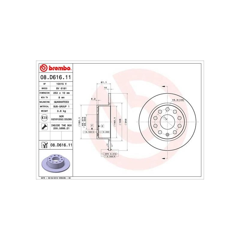 Ce Disque de frein BREMBO 08.D616.11 est conçu pour des véhicules SKODA. La compatibilité pouvant varier selon les motorisations, années ou options, nous vous recommandons de vérifier attentivement les spécifications du produit.