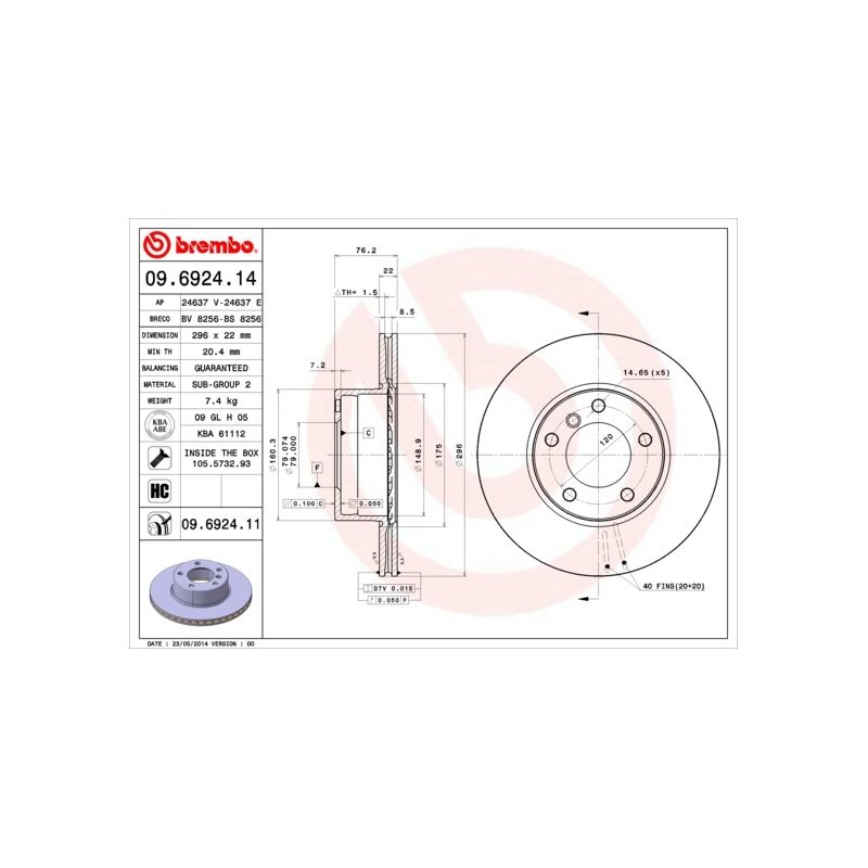 Commandez votre Disque de frein BREMBO 09.6924.11 dès aujourd’hui et profitez d’un service fiable, d’une livraison rapide et d’un accompagnement professionnel tout au long de votre achat.