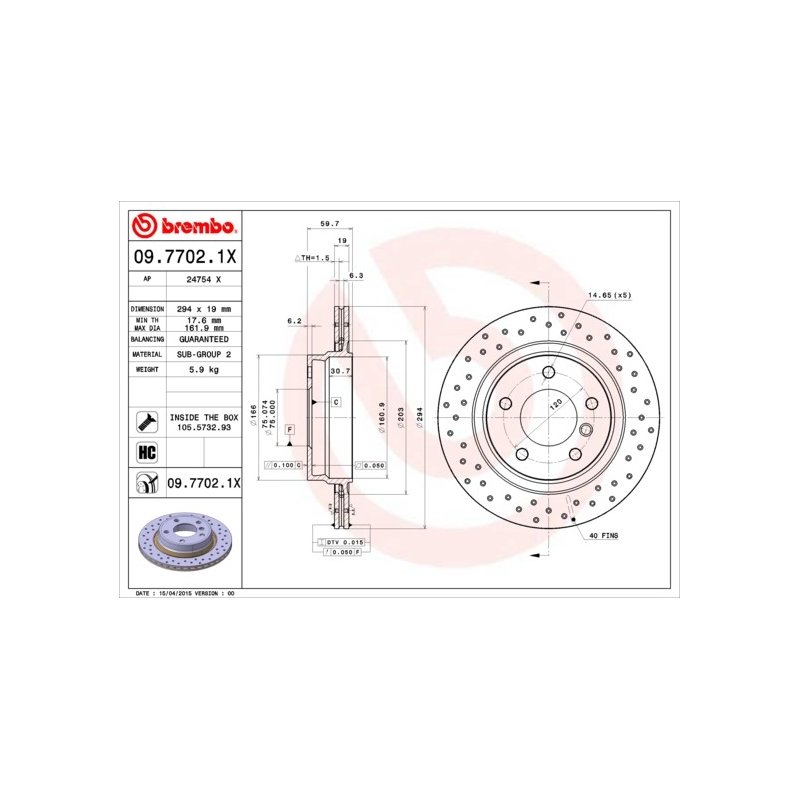Chez eAuto Parts, nous comprenons l’importance de pièces de rechange fiables. Ce Disque de frein BREMBO 09.7702.1X est conçu et contrôlé afin d’assurer un ajustement précis et des performances durables dans des conditions normales d’utilisation. Il convient aussi bien aux professionnels qu’aux particuliers expérimentés.