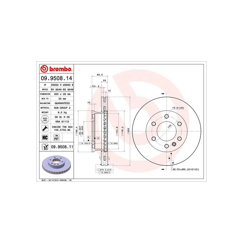 Ce Disque de frein BREMBO 09.9508.11 est une pièce équivalente OEM, compatible avec la référence constructeur , conçue pour certains modèles MERCEDES-BENZ, VW. Fabriqué par BREMBO, il est destiné à offrir fiabilité et durabilité dans le cadre d’une réparation ou d’un remplacement standard.