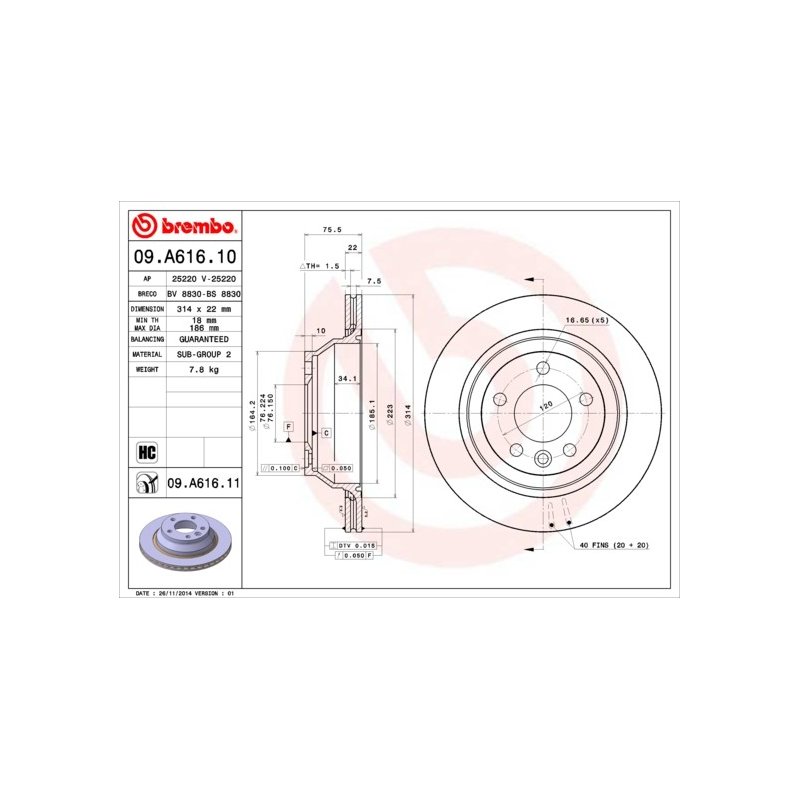 Commandez votre Disque de frein BREMBO 09.A616.11 sur eAuto Parts et bénéficiez d’un achat en toute sérénité, avec un droit de rétractation de 14 jours conformément à la réglementation en vigueur.
