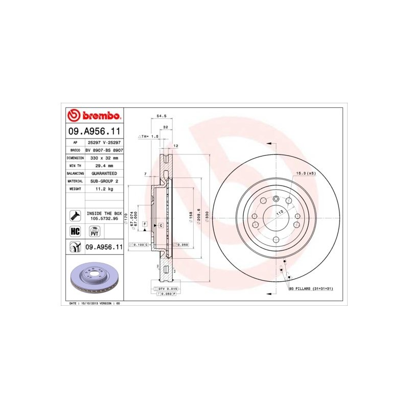 Commandez votre Disque de frein BREMBO 09.A956.11 sur eAuto Parts et bénéficiez d’un achat en toute sérénité, avec un droit de rétractation de 14 jours conformément à la réglementation en vigueur.