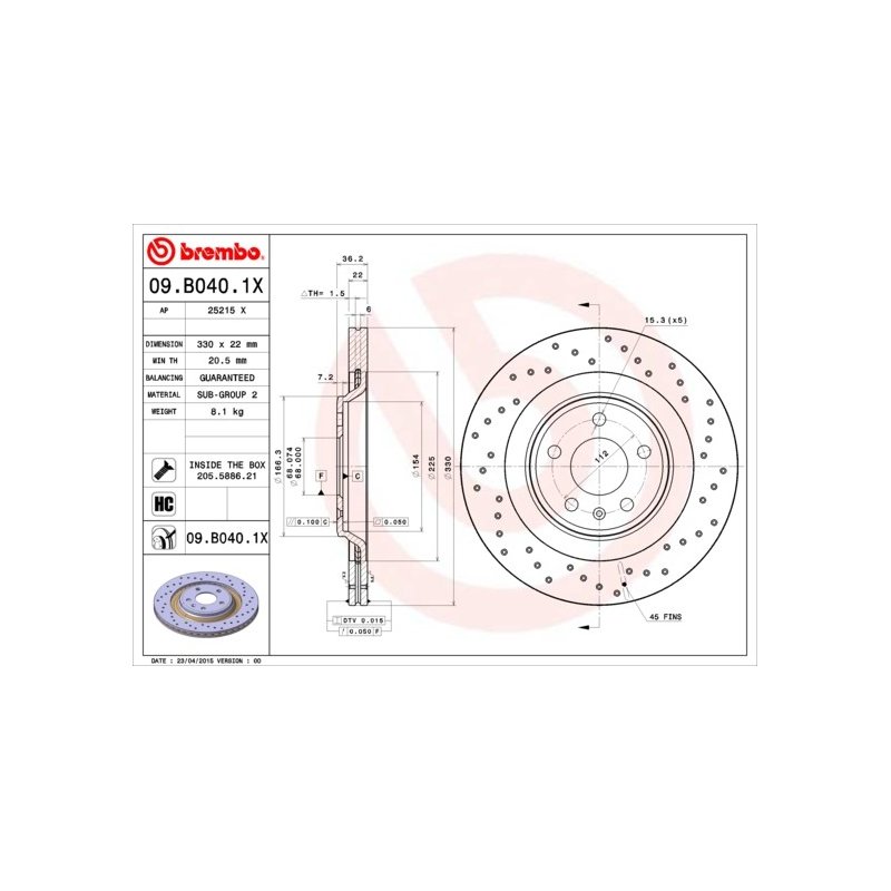 Ce Disque de frein BREMBO 09.B040.1X est une pièce équivalente OEM, compatible avec la référence constructeur , fabriquée par BREMBO conformément aux spécifications techniques d’origine. Il est destiné à offrir fiabilité et durabilité dans le cadre d’une réparation ou d’un remplacement standard.