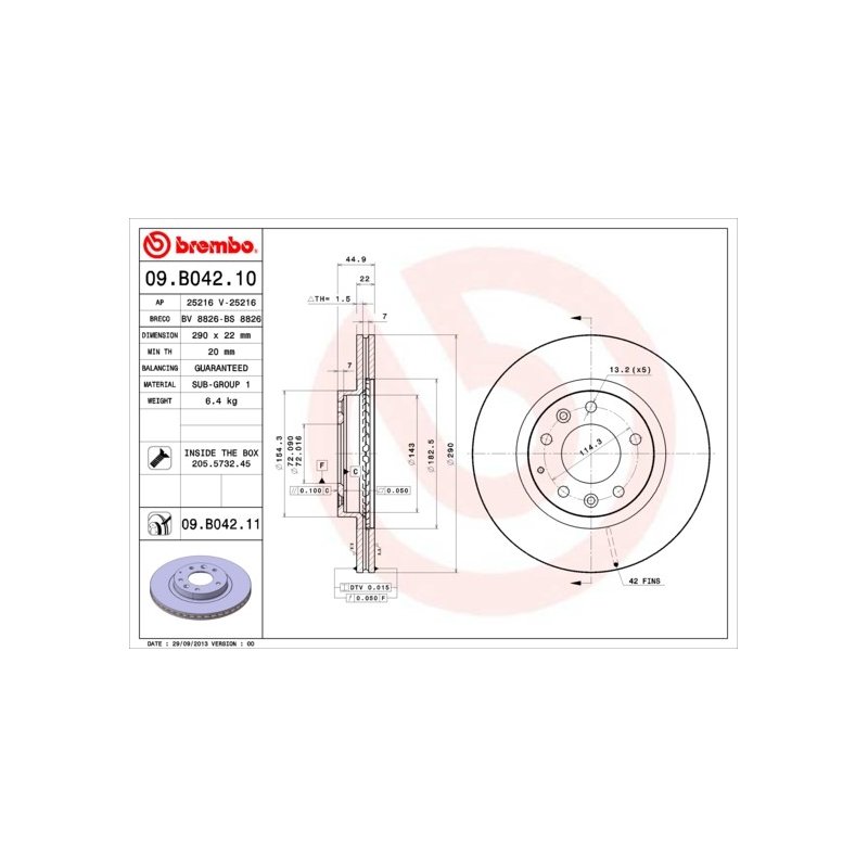 Ce Disque de frein BREMBO 09.B042.11 neuf pour MAZDA est fabriqué par BREMBO. Il s’agit d’une pièce équivalente OEM, compatible avec la référence constructeur ainsi qu’avec d’autres références croisées le cas échéant. Conçu selon des standards de qualité élevés, ce produit est commercialisé sous la référence 09B04211EAN: 8020584026212.