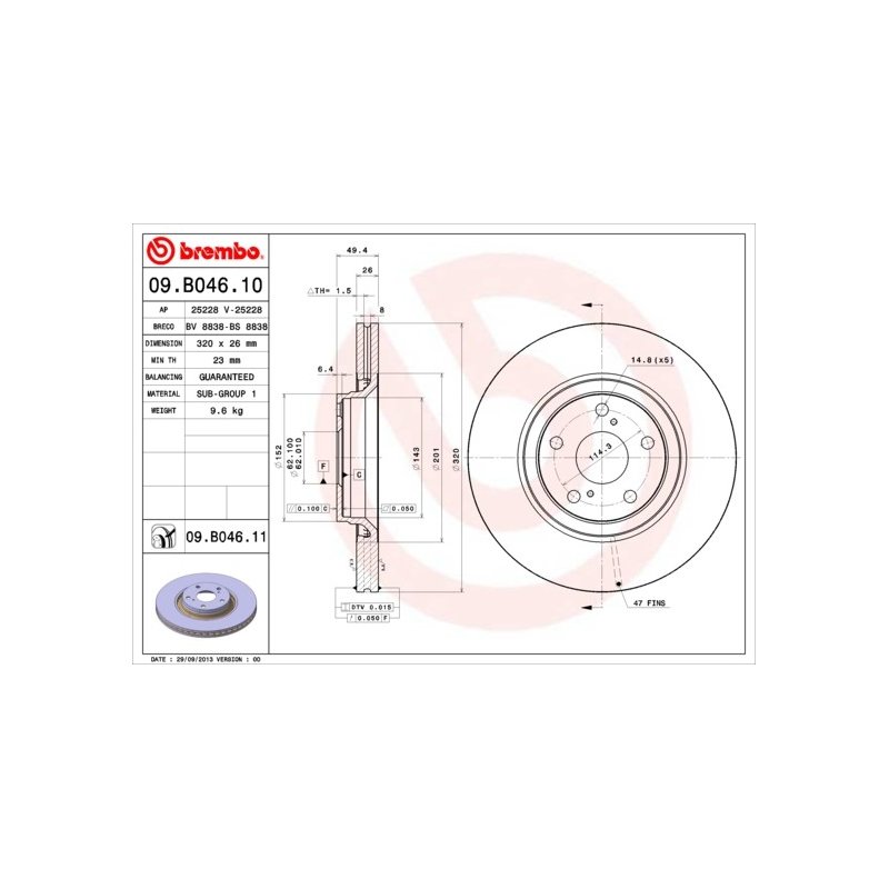 Ce Disque de frein BREMBO 09.B046.11 est une pièce équivalente OEM, compatible avec la référence constructeur , fabriquée par BREMBO conformément aux spécifications techniques d’origine. Il est destiné à offrir fiabilité et durabilité dans le cadre d’une réparation ou d’un remplacement standard.