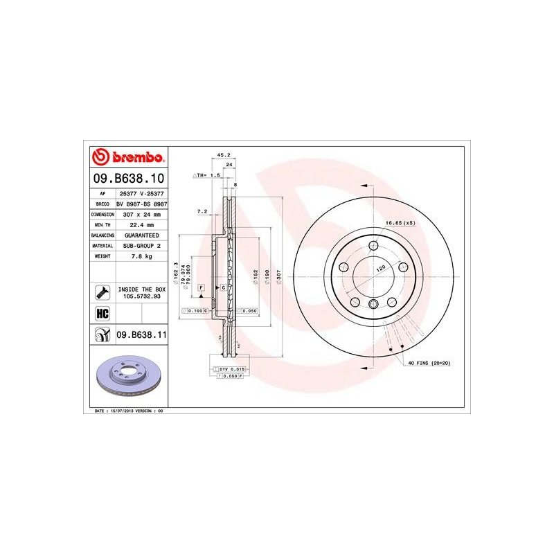 Ce Disque de frein BREMBO 09.B638.11 est une pièce équivalente OEM, compatible avec la référence constructeur , fabriquée par BREMBO conformément aux spécifications techniques d’origine. Il est destiné à offrir fiabilité et durabilité dans le cadre d’une réparation ou d’un remplacement standard.