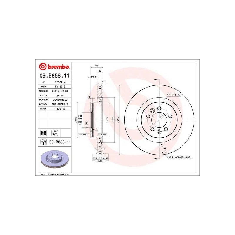 Commandez votre Disque de frein BREMBO 09.B858.11 sur eAuto Parts et bénéficiez d’un achat en toute sérénité, avec un droit de rétractation de 14 jours conformément à la réglementation en vigueur.