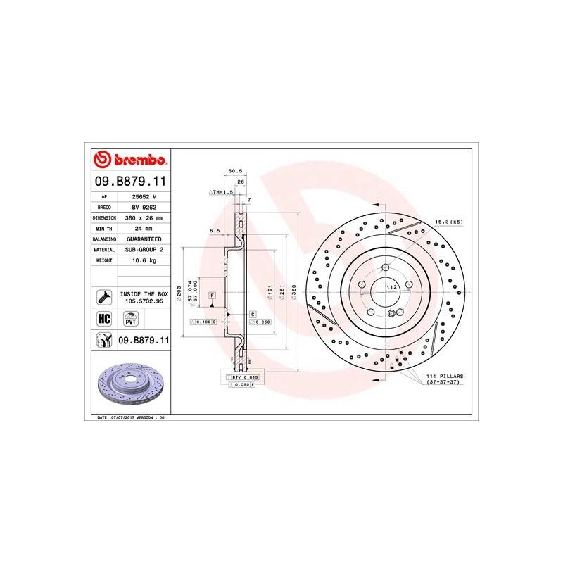 Ce Disque de frein BREMBO 09.B879.11 neuf pour MERCEDES-BENZ est fabriqué par BREMBO. Il s’agit d’une pièce équivalente OEM, compatible avec la référence constructeur ainsi qu’avec d’autres références croisées le cas échéant. Conçu selon des standards de qualité élevés, ce produit est commercialisé sous la référence 09B87911EAN: 8020584227992.