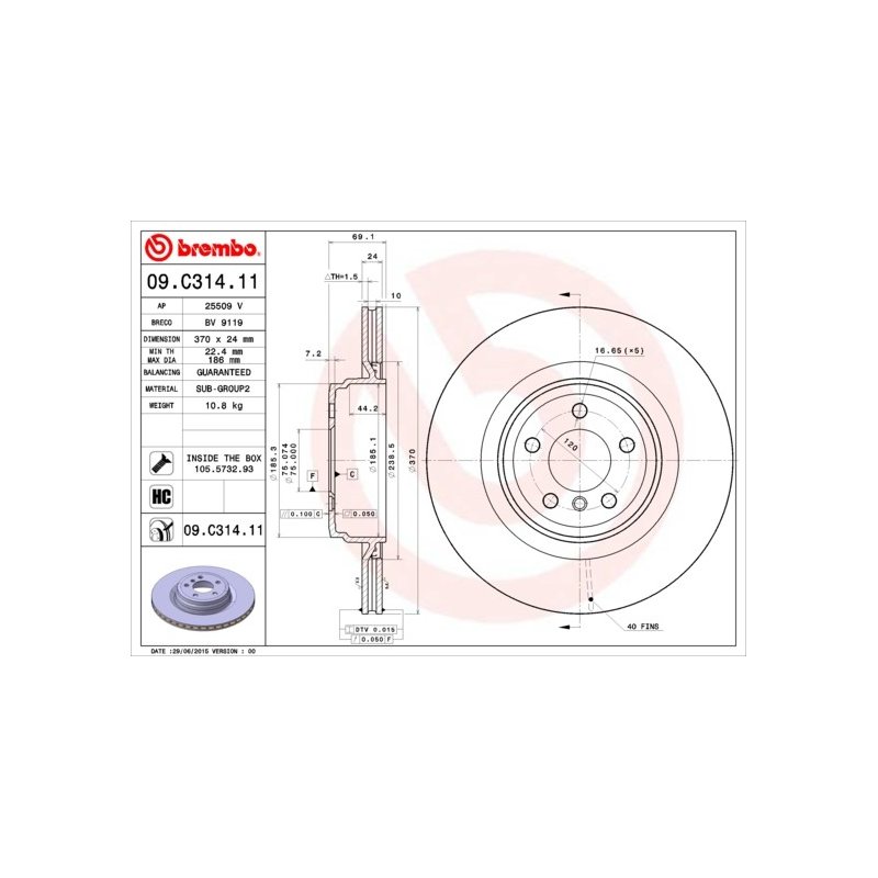 Commandez votre Disque de frein BREMBO 09.C314.11 sur eAuto Parts et bénéficiez d’un achat en toute sérénité, avec un droit de rétractation de 14 jours conformément à la réglementation en vigueur.