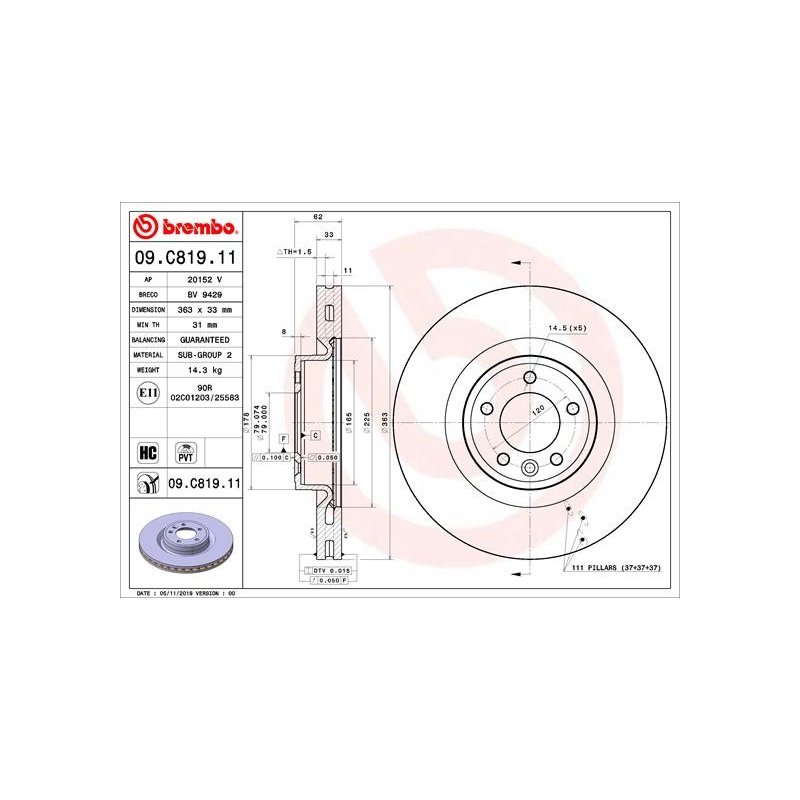 Ce Disque de frein BREMBO 09.C819.11 est une pièce équivalente OEM, compatible avec la référence constructeur , conçue pour certains modèles LAND ROVER. Fabriqué par BREMBO, il est destiné à offrir fiabilité et durabilité dans le cadre d’une réparation ou d’un remplacement standard.