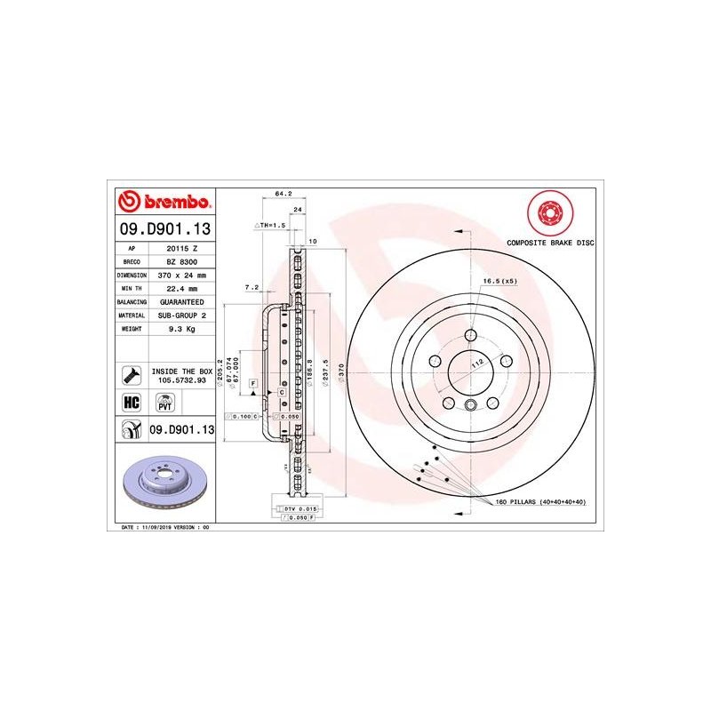 Ce Disque de frein BREMBO 09.D901.13 est une pièce équivalente OEM, compatible avec la référence constructeur , fabriquée par BREMBO conformément aux spécifications techniques d’origine. Il est destiné à offrir fiabilité et durabilité dans le cadre d’une réparation ou d’un remplacement standard.