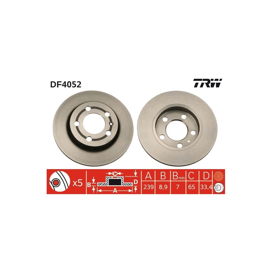 Produit : Disque de frein TRW DF4052 pour AUDI, SKODA, VW OE 1J0615601D