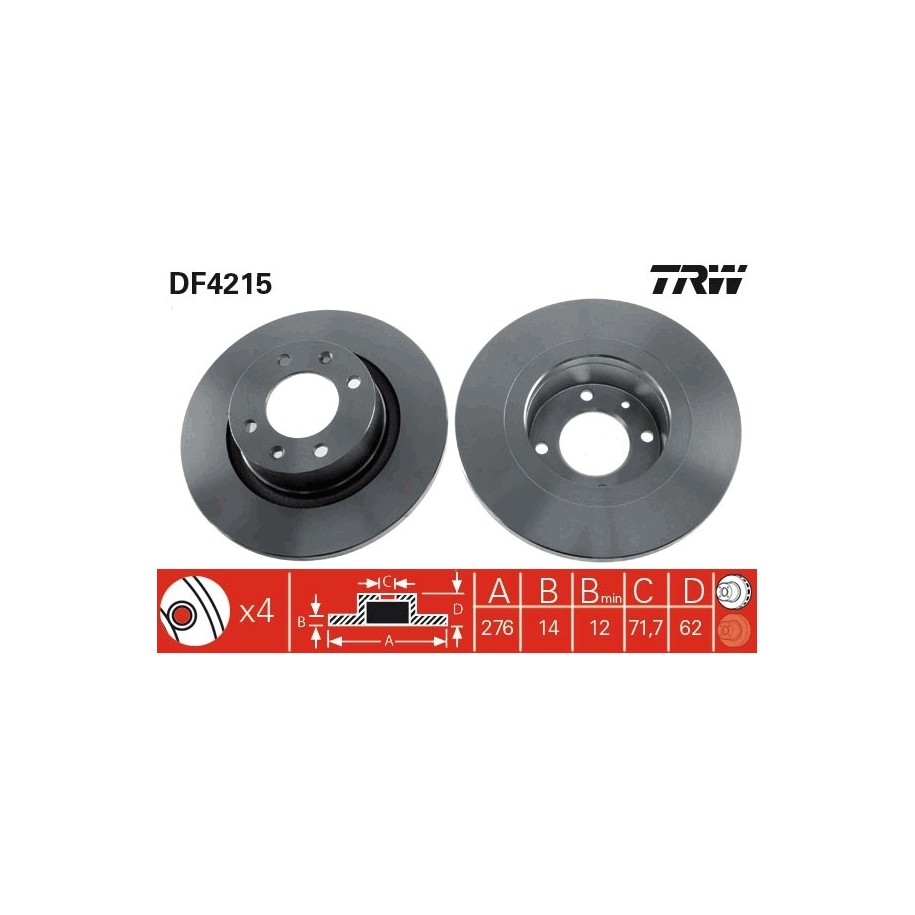 Ce Disque de frein est une pièce équivalente OEM, compatible avec la référence constructeur , fabriquée par TRW conformément aux spécifications techniques d’origine. Il est destiné à offrir fiabilité et durabilité dans le cadre d’une réparation ou d’un remplacement standard.
