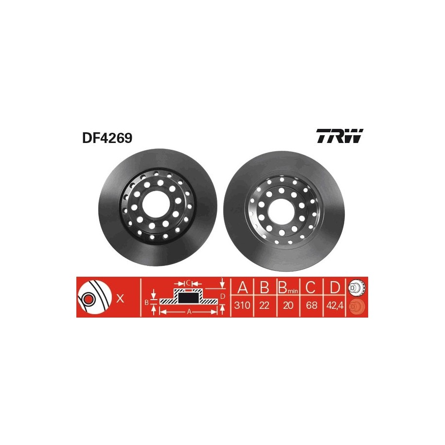 Disque de frein TRW DF4269 pour AUDI, VW A8, PHAETON OE 4E0615601A