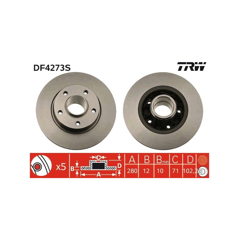 Produit : Disque de frein TRW DF4273S pour NISSAN, VAUXHALL, RENAULT, référence d'origine 43206-00Q0D
