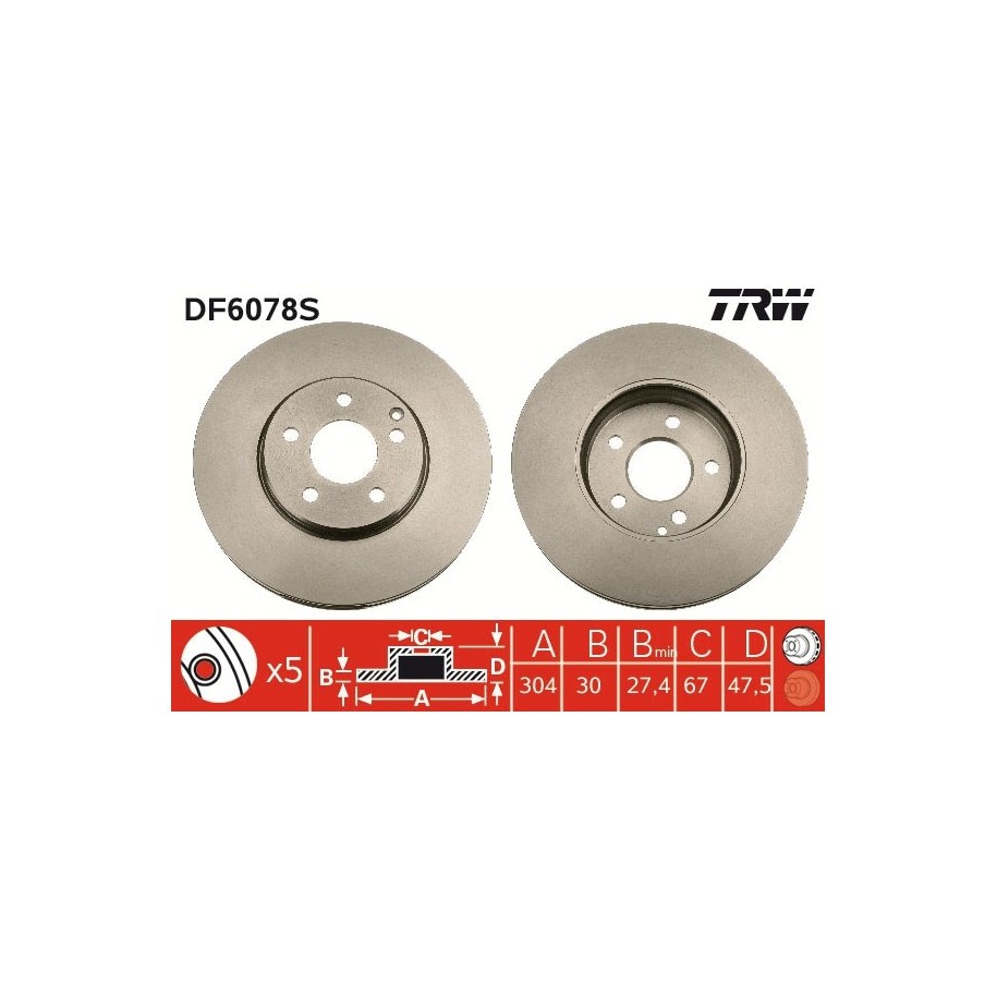 Produit : Disque de frein TRW DF6078S pour MERCEDES CLASSE E OE 2114211212