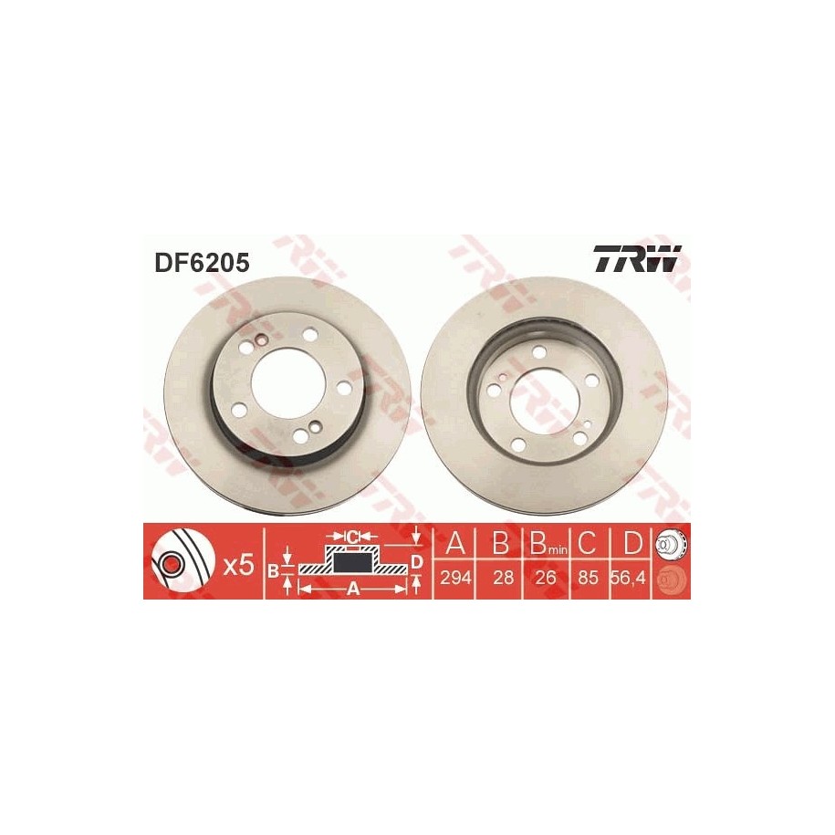 Produit : Disque de frein TRW DF6205 pour SSANGYONG ACTYON, KYRON, REXTON