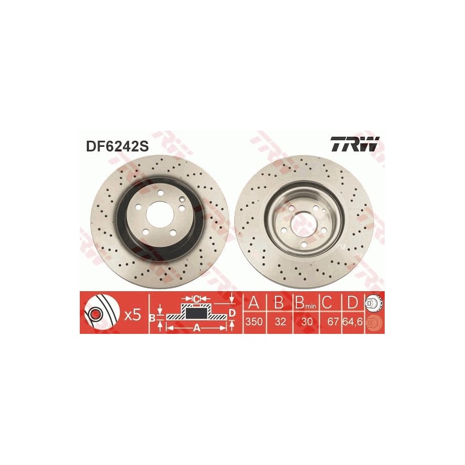 Disque de frein TRW DF6242S pour MERCEDES CLASSE E, CLASSE S, SL OE 2214211612