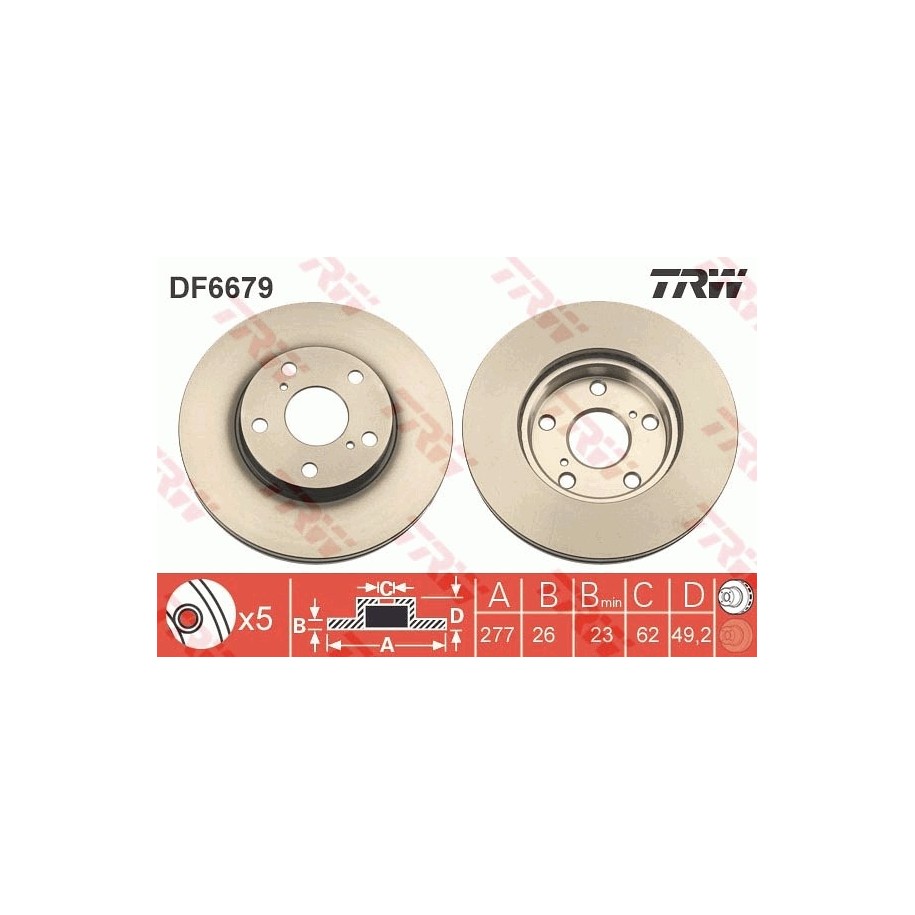 Ce Disque de frein constitue une solution économique pour l’entretien ou la réparation de votre véhicule TOYOTA. Il s’agit d’une pièce équivalente OEM, compatible avec la référence constructeur , fabriquée par TRW conformément aux spécifications techniques d’origine.