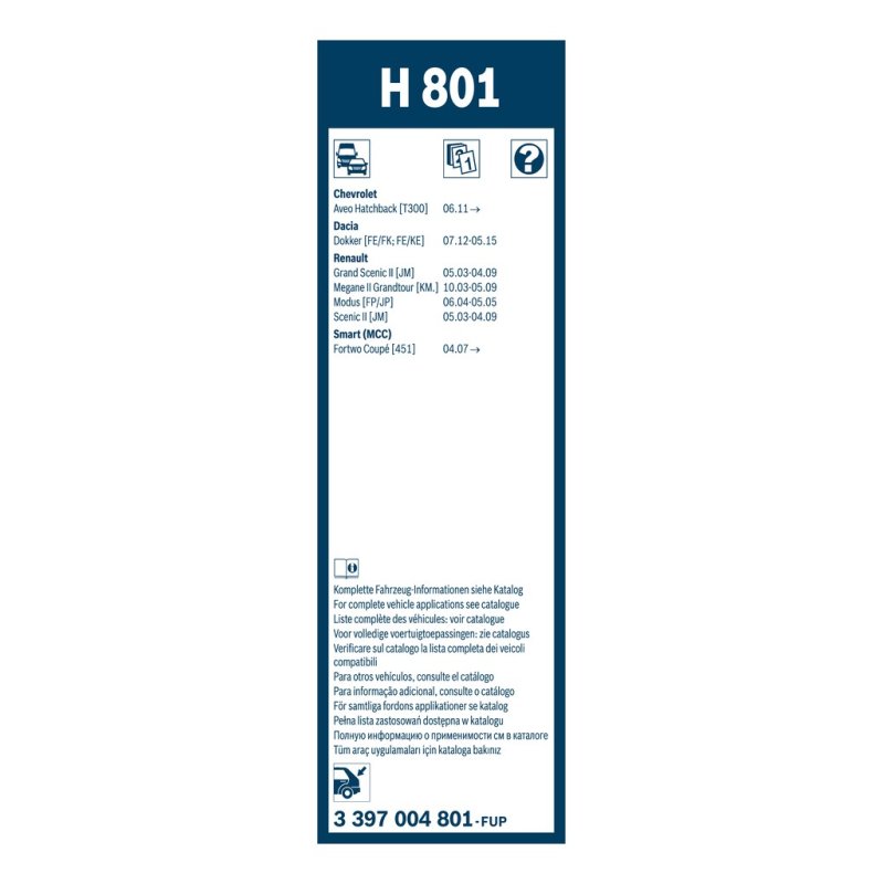 Chez eAuto Parts, nous proposons des pièces automobiles fiables et sélectionnées avec soin, comme ce Essuie glace arrière BOSCH, conçu pour certains modèles CHEVROLET, DACIA, RENAULT, SMART. Cette pièce est équivalente OEM et compatible avec la référence constructeur , tout en respectant les spécifications techniques d’origine. Fabriquée par BOSCH, elle est identifiée sous la référence 3397004801EAN: 4047023136701.