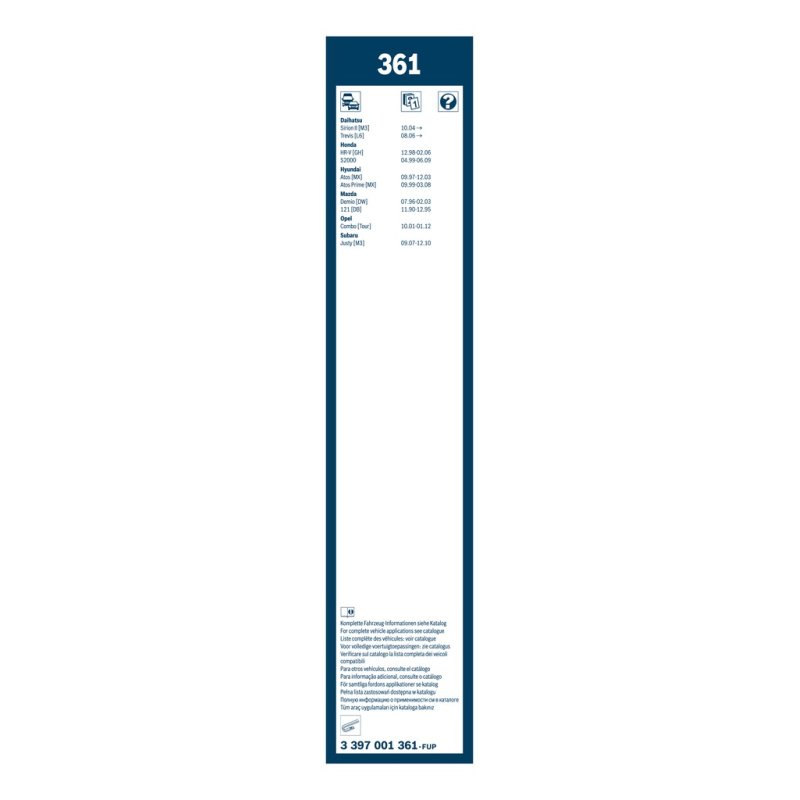 Ce Essuie glace BOSCH constitue une solution économique pour l’entretien ou la réparation de votre véhicule CHEVROLET, DAIHATSU, HONDA, HYUNDAI, MAZDA, NISSAN, OPEL, SUBARU, VAUXHALL. Il s’agit d’une pièce équivalente OEM, compatible avec la référence constructeur , fabriquée par BOSCH conformément aux spécifications techniques d’origine.